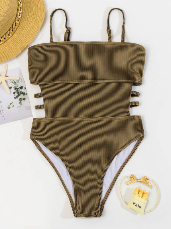 Solid Color Belly-Hollow One-Piece Swimwear