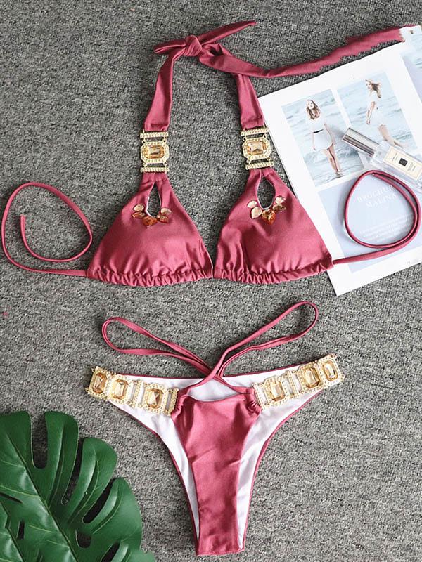 Crystal Bandage Split Bikini Swimsuit
