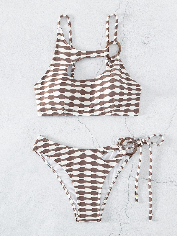 Padded Color-Block Hollow Striped Bikini Swimsuit